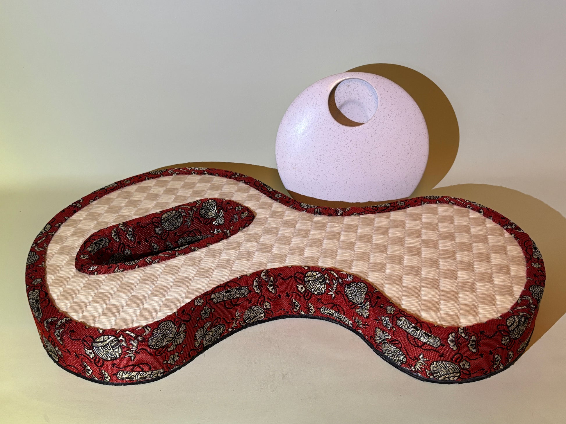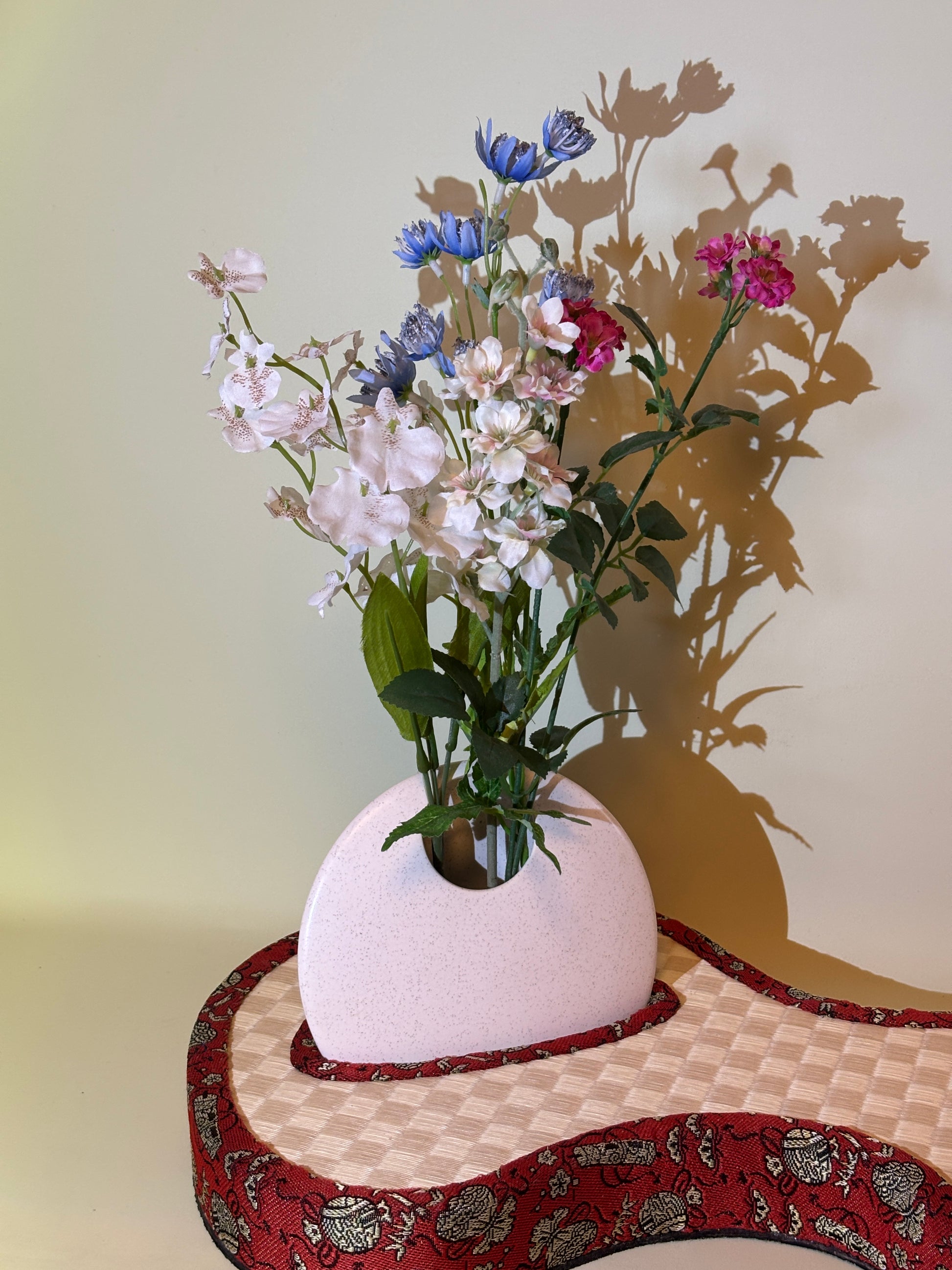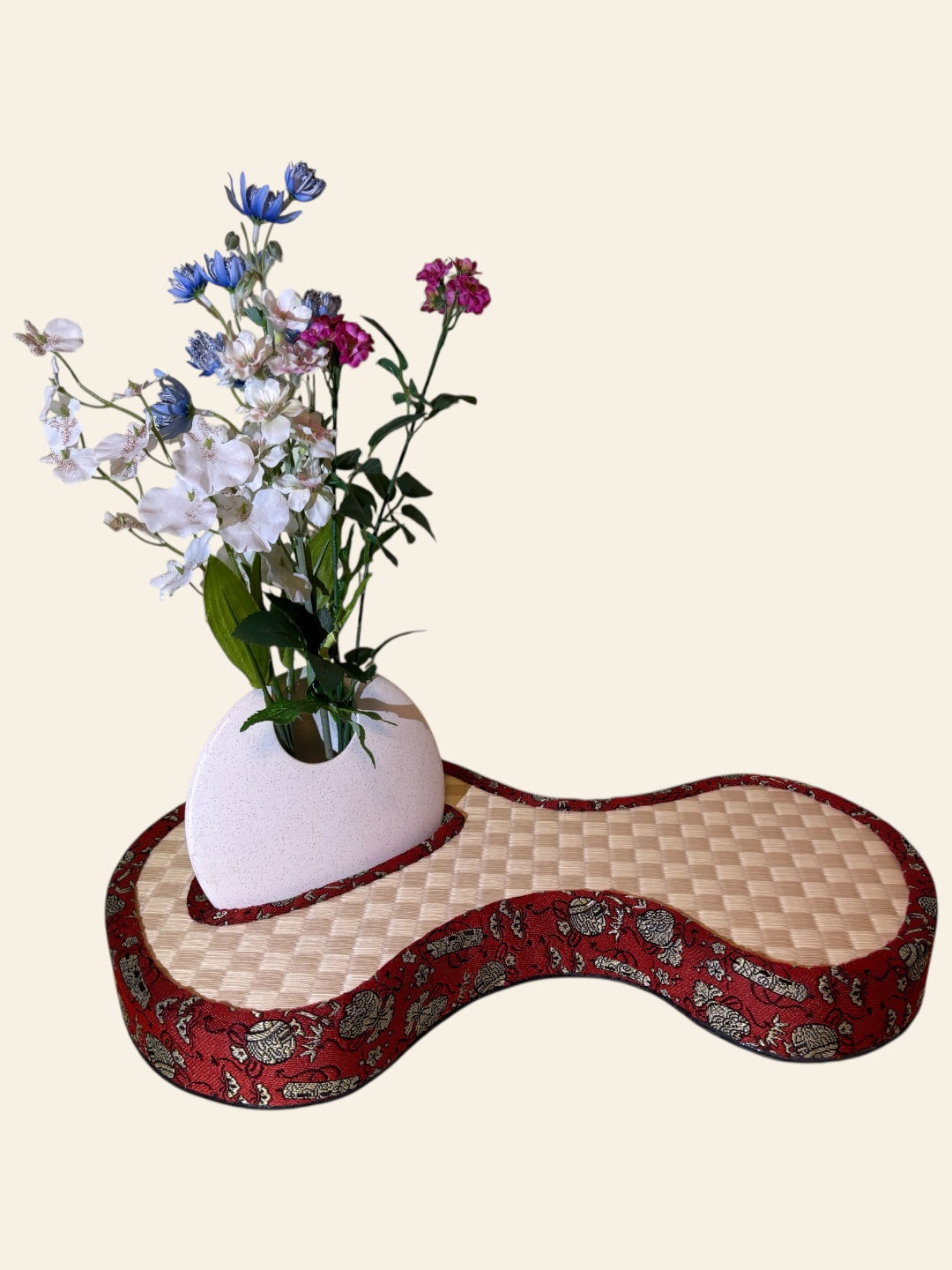 花器のかたちに合わせて仕立てられた、曲線が美しい畳の花台。