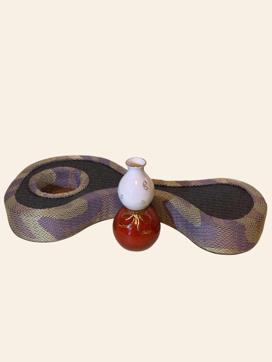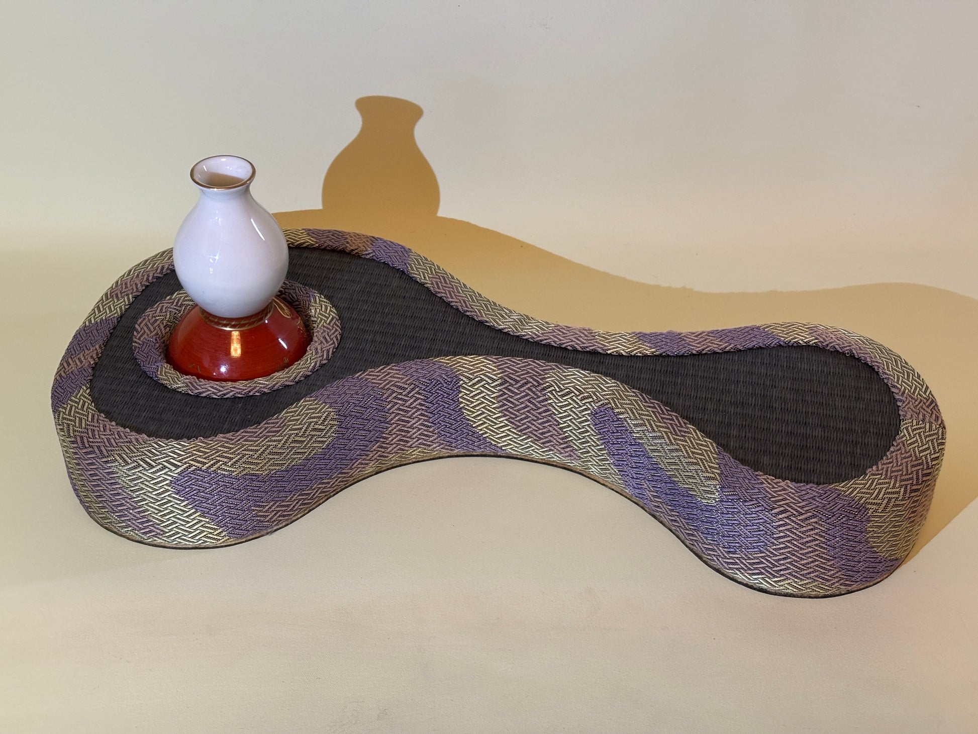 畳の曲線美を活かしながら、中央に器を固定した構造で、花や小物を安定して飾ることができます。