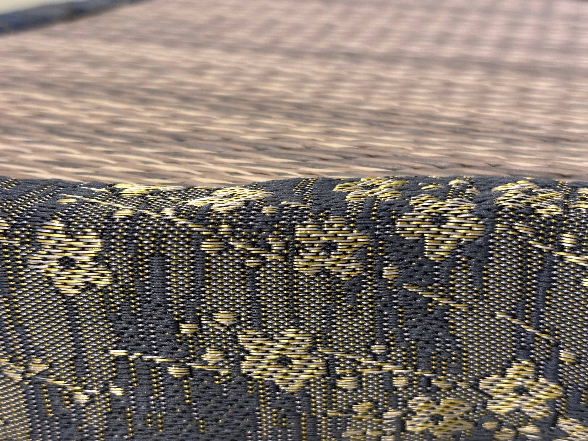 At night, the woven pattern of the tatami softly glows under ambient lighting.